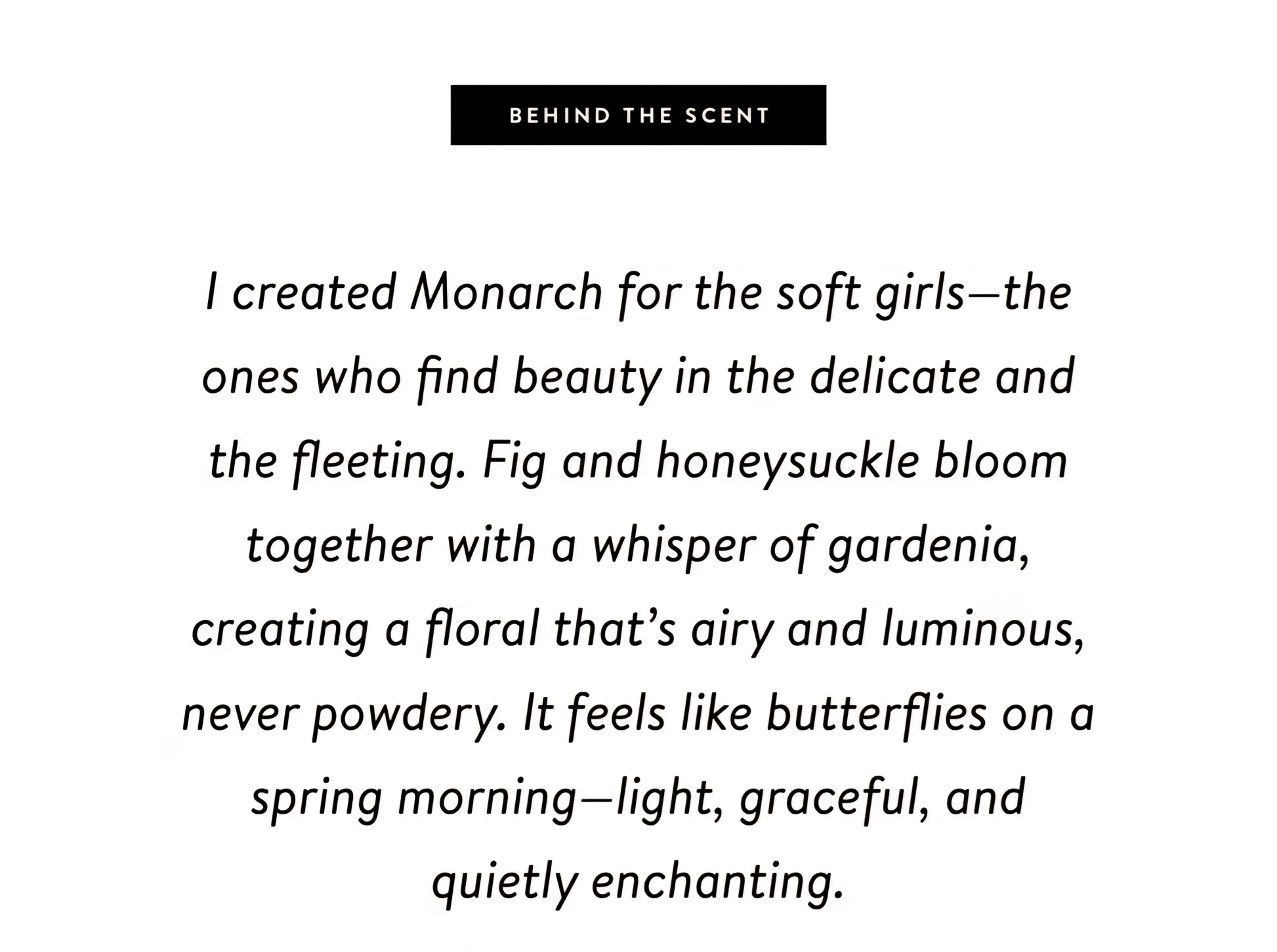 Monarch bottles the magic of butterflies — soft & delicate yet confident, breezy yet grounded. It’s a go-to floral that feels timeless, effortless, and just a little bit flirty.